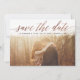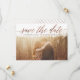 This elegant save the date features shimmering script in faux rose gold foil with a striped backer. Upload your own photo and customize the information to include your wedding details.