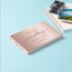 A rose gold gradient background, rose gold foil text. Personalize and add your names and the wedding date.