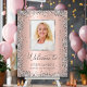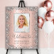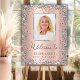 Elegant Modern Sparkle silver glitter and Rose Gold Metal Personalized Photo 60th Birthday Welcome Foam Board. This Girly Adult feminine SIXTY (SIXTIETH) OR ANY AGE Birhday party sign featuring a stylish handwritten calligraphy script, silver glam glitter frame around on blush rose gold metal foil look background. Ideal for a feminine adult or girly milestone birthday celebration, this perfectly captures the essence of a modern sparkle girly birthday party.