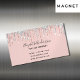 An elegant, feminine and modern business card magnet. A rose gold, pink background, decorated with rose gold, pink and faux silver drips, paint dripping look. Personalize and add your name, text/title and contact information. Black letters. The name is written with a modern and trendy hand lettered style script.
