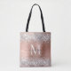 Rose Gold Silver Glitter Metallic Monogram Script Tote Bag