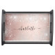 A rose gold faux metallic looking background. Decorated with faux silver glitter drips and glitter dust. Personalize and add a name. The name is written with a modern hand lettered style script with swashes.