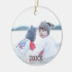 Rose Gold Snowflake 2 Sided Photo Christmas Ceramic Ornament