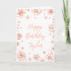 This elegant and glamorous watercolor birthday card can be personalized with a name or title, such as mom, daughter, granddaughter, niece, friend etc. It features watercolor rose gold faux glitter snowflakes and sparkles on a white background. The text combines handwritten script and modern sans serif fonts for a classy and sophisticated look.