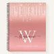This elegant notebook features blush pink diamond drips on a rose gold background. Add your name, initial and custom text to personalize. Perfect for school, home or office.