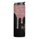 Rose Gold Sparkle Glitter Drips Monogram Black Thermal Tumbler