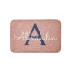 Pink - Rose Gold and Navy Blue Sparkle Glitter Monogram Name and Initial Bath Mat. The Bath Mat makes the perfect gift for someone decorating her room in rose gold.