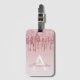Blush Pink - Rose Gold Modern Ombre Dripping Faux Sparkle Glitter Monogram Name and Initial Luggage Tag. This bag tag is perfect for Back to School, Work, or Traveling.
