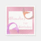 Pink Rose Gold Faux Sparkle Mermaid Birthday Party Napkins. These Napkins are perfect for the Mermaid Baby Birthday Party looking to celebrate in Pink Rose Gold. The name and birthday year can be changed.