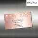 An elegant, feminine and modern business card magnet. A rose gold background, decorated with sparkles. Personalize and add your name, text/title and contact information. Black letters. The name is written with a modern and trendy hand lettered style script.