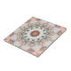 Ceramic tile featuring a geometric design based on bird feathers. A beautiful nature inspired star mosaic design in light colors with rose gold effects. The image is large enough for both the small or large size tile and will fit nicely in a kitchen or bathroom.