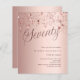 A modern, stylish invitation for a 70th birthday party. Rose gold gradient background and the word Seventy written with elegant large script letters in dark rose gold. Decorated with rose gold colored stars. Personalize and add a name and party details.
