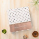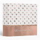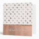 Chic Avery brand three ring binder done in graphics of a rose gold look, with stars, polka dots, and glitter. Personalize the white text, running across the bottom front, to read what you want. Great as a wedding planner, photo album, school, home, or office.