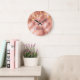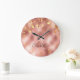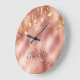 An elegant, girly, glamorous wall clock. A trendy rose gold gradient background. Decorated with golden stars. Personalize and add your name and monogram, initials. Golden numbers.