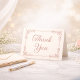 This elegant thank you note features a soft ivory background with a delicate dusty pink design, inspired by the look of rose gold. A graceful script “Thank You” is framed by an ornate filigree border, creating a timeless and refined aesthetic while maintaining a soft, understated look.