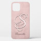 Modern elegant rustic abstract iPhone 12 Case. Gradient rose gold, blush pink, white colors. Modern trendy fashion design. A text template is included to personalize with your monogram or text. You can also delete the sample monogram if you wish to order the phone case without text.