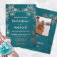 This elegant wedding invitation features rose gold line art floral cherry blossoms on a shimmering teal / turquoise background. Your photo on the backside.