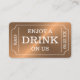 Rose Gold Ticket Style "Enjoy A Drink On Us" Enclosure Card