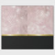 Wrapping paper with a background composed with a modern trendy rose gold tropical leaves pattern. Layered over top is a black frame with a gold gradient border,