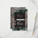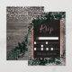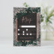 A modern, chic and elegant rose gold typography Floral green Christmas winter rsvp wedding with hand painted green watercolor leaf foliage on a rustic striped brown wood with white snow and snowflakes..