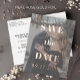 Modern contemporary chic bold typography script black and rose gold real foil simple minimalist text overlay wedding save the date postcard with your custom photo. ++++++++++++ Please note that you can choose the foil color from three options: GOLD, SILVER, ROSE GOLD.