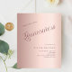 A modern minimalist Quinceañera invitation. Rose gold gradient background and the word Quinceanera written with large letters. Personalize and add a name and party details.