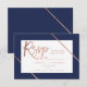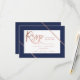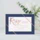 Rose Gold typography on customizable navy blue and faux rose gold geometric stripes chic rsvp wedding , perfect for elegant, stylish wedding,