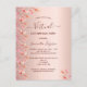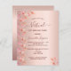 A girly and feminine virtual 21st (or any age) birthday party invitation. On front: A rose gold faux metallic, foil looking background. Decorated with rose gold and pink florals, fall botanical leaves. Personalize and add a name and Zoom/Skype party details. The name and the text: Virtual are written with a hand lettered style script, dark rose gold colored letters.