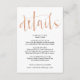 Dreamy meets rustic with this simple and elegant wedding details card in rose gold. Add your own wording into the template below the beautiful script heading. This card is part of our 'Anne & Oliver' range - check the full range out in our store!