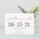 This save the date features rose gold lettering for an elegant way to let your guests know your wedding has been postponed and give them your new wedding date.