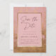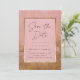 This is a rose gold metallic marble save the date wedding announcement. The design features an elegant rose gold background with a sheer panel of warm pink and beautiful handwritten calligraphy. Customise all of the text and design elements to your own requirements.