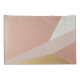 A modern abstract composition featuring intersecting geometric shapes in soft blush pinks, creamy white, and a bold metallic gold. The textured surface adds depth and a tactile element to the minimalist design, evoking a serene and sophisticated atmosphere. Perfect for contemporary interiors or as a digital background.