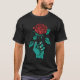 My 11 yo wore adult XL (5’7” 165#). The 8yo is small framed. She wore adult small and tied it in the back. Grandma wore adult large with long sleeve shirt underneath. Tall girl adult medium. Dark haired male adult large. Good quality dark Heather gray, Gildan brand shirt. -it was next up from basic choice and cost about $20 per shirt. Not too thick or thin. Washed and dried well, no major shrinkage. Not see-through. Can wear a bra under it fine. Screen print is just as shown and well done, front and back.