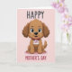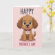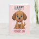 Designed with a friendly, human-like dog at the center, this illustration shows soft brown fur, big dark eyes, and a small smile that feels like it’s meant for someone special ❤️. The background is a smooth pale rose, giving the scene a gentle, affectionate mood without any extra clutter. Near the top, the word “HAPPY” sits above the character in dark charcoal lettering, spaced to feel airy and calm. Near the bottom, “MOTHER’S DAY” appears in a deep red tone, grounding the layout and drawing the eye downward. The dog’s expression reads like a tender greeting, as if it’s looking up at a loved one with quiet devotion. A bright magenta collar adds a pop of color, and a small white tag hangs at the front for a sweet, cared-for detail 🌼. The pale rose backdrop stays uniform from edge to edge, framing the centered figure and the top-and-bottom text.
