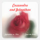 A single, dreamy, romantic red rose on a white background - make it uniquely yours with your own names and date