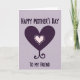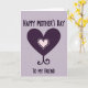 Designed with a soft lavender background, the card features a subtle woven grid texture that adds gentle depth. In the center sits a large deep plum heart holding a smaller rose-tinted heart close, like a quiet sign of friendship and care ❤️. A ring of pearly dots circles the smaller heart, giving it a tender glow and drawing your eye inward. The bottom of the large heart stretches into flowing decorative curls that suggest movement, like a warm hug that lingers. Near the top, the words “HAPPY MOTHER’S DAY” appear in a rounded, easy-to-read style in a darker purple tone. Beneath the heart, “TO MY FRIEND” is placed neatly in matching lettering, reinforcing the close bond between the sender and receiver 🌼. The central heart is rich plum, the inner heart is soft rose, and the dot ring is a pale, pearly white against the lavender field.