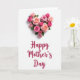 Designed with a heart-shaped cluster of fresh roses centered on a bright white background, this card keeps the focus on a romantic floral symbol ❤️. The blooms blend deep fuchsia, rich magenta, soft blush, and creamy peach, with small green leaves tucked between petals for gentle contrast. Soft, diffused light glides across the velvety petals, and the faint shadows make the heart look slightly lifted from the page. The open white space around the flowers feels airy, like a quiet moment shared between close friends or partners who linger in each other’s gaze. Beneath the floral heart, a flowing handwritten-style message sits near the lower center in strong magenta lettering, echoing the rose tones. The lettering is smooth and slightly slanted, with the text kept clear against the white space so it reads easily. The final touch is the neat placement of the magenta words directly under the rose heart, with a small margin of white space separating text and flowers 🌼.
