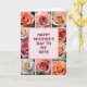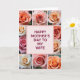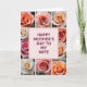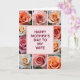 This greeting card features a soft pastel pink square centered on the front, setting a gentle, romantic tone ❤️. Inside that square, a loving dedication appears in rich maroon lettering, placed prominently in the middle for easy reading. Faint heart shapes drift behind the words, like a quiet little secret that adds warmth without distracting from the message. Surrounding the center panel is a balanced frame of eight close-up rose photos, arranged like a tidy floral border. The roses move through creamy ivory, blush pink, peach, and coral shades, creating the look of a bouquet shared between close friends or sweethearts 🌼. Soft, diffused light highlights the curled, velvety petals, making the textures feel almost touchable. The maroon text stands out clearly against the pale background, while the floral images keep the edges full and inviting. Each rose photo shows a tight spiral of layered petals with gentle shadows tucked into the folds.