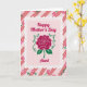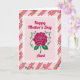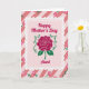 This greeting card features a soft palette of pinks and greens, with a tender, affectionate feel that suits a close family bond ❤️. A central rectangular panel is outlined by a wavy scalloped border, like a vintage stamp edge, drawing your eye inward. Near the top inside the panel, the words “Happy Mother’s Day” appear in a flowing magenta style, centered and easy to spot. Below the greeting, a large layered rose in deep red sits in the middle, its petals curled into a tight spiral that feels like a gentle embrace. Curving green vines and leafy stems wrap around the rose, adding a graceful, caring touch without crowding the design 🌼. Near the bottom of the panel, the word “Aunt” is placed in matching magenta lettering, smaller than the main greeting but still prominent. Outside the panel, the background is filled with diagonal stripes in two shades of pink, sprinkled with small rose blossoms and thin green stems across the page.