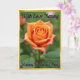 This card features a close-up of an orange rose in full bloom, its layered petals curling inward like a gentle embrace ❤️. Color shifts from a deep, fiery orange near the center to soft peach and salmon along the outer edges, giving the flower a tender, romantic glow. In the upper left, a small bud sits tightly wrapped, like a quiet companion leaning in near the main blossom. Soft, diffused light falls across the petals, highlighting their velvety texture while the green background fades into a smooth blur. Near the top, the text “With Love Nanny” appears in black with a thin white outline, floating over the greenery. Along the bottom, “Happy Mother’s Day” is placed in the same flowing style and coloring, balanced neatly beneath the flower 🌼. A brushed golden border frames the entire design, with slightly textured corners that catch the light.