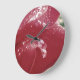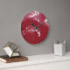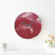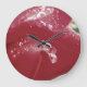 Large round wall clock featuring an up close shot of rain drops on pretty red rose petals.