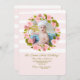 A sweet invitation to a little girl's birthday celebration featuring a round photo window of pink roses and a pink and white stripe background. (<a href='https://www.freepik.com/free-photo/cute-little-girl-with-easter-eggs-sitting-on-floor-at-home_2462255.htm'>Designed by Freepic.diller</a>. <a href='https://www.freepik.com/free-vector/flower-greeting-card-background_3330633.htm'>Designed by Vextok</a>). <br/><br/>The card is easy to customize with your wording, font and font color.<br/><br/>Not exactly what you're looking for? All our products can be custom designed to meet your needs at no extra charge.<br/><br/>Simply contact us at askcottonlamb@gmail.com.<br/><br/>Coordinating products available: Just ask us!