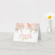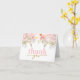 A floral rose pink waterfall cascades over the large pink and gold thank you text to coordinate with our Little Miss ONEderful birthday theme. These would also work nicely as general thank you cards, wedding or baptism thank you cards.