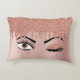 Rose Pink Gold Eyelashes Dripping Glitter Accent Pillow