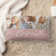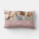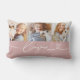 A soft rose pink band with white love script and a heart flourish anchors three personalized photo frames on this lumbar pillow. The warm, feminine colorway makes a beautiful gift for mom, grandma, or anyone who loves a rosy aesthetic. Upload your favorite family, couple, or pet photos to make it yours.