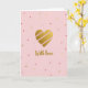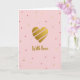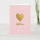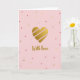 This card features a large heart centered on a soft rose-pink background, giving the scene a gentle, affectionate feel ❤️. The heart is rendered in glittery gold with a few thin diagonal stripes in a lighter pink that add a tender, modern accent. Beneath the heart, the words “With love” appear in a flowing cursive style, also in gold, placed near the lower center. The calm backdrop keeps the focus on the heart while suggesting quiet closeness, like a warm note left for someone you care about. Scattered across the background are small, irregular specks that resemble confetti, creating a light celebratory touch 🌼. These specks vary in muted pinks, deeper rose tones, and occasional hints of gold, echoing the heart’s palette. The overall lighting looks soft and diffused, letting the metallic details catch the eye without overpowering the pastel setting. The gold heart sits centrally with pink diagonal lines, and the gold “With love” text rests just below it against the rosy field of scattered speckles.