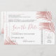 Rose Pink Palm Leaf Boarding Pass Save Date Card