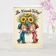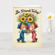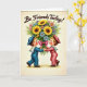 This greeting card features two childlike figures in classic sailor outfits, one in bright blue and the other in soft pink, standing close and facing each other with a tender, friendly gaze. Their hands meet at the center as they hold a large bouquet together, suggesting closeness and shared affection ❤️. The flowers spill outward in sunny yellows with sunflower faces, mixed with pale pink and light blue daisy-like blooms and small touches of violet. A wide, deep pink ribbon wraps the stems, adding a romantic flourish where their fingers nearly touch. Near the top, the phrase “Be Friends Today!” appears in flowing dark lettering, centered above the illustration. The background is a creamy off-white with a gentle texture and soft, diffused lighting that gives the scene a nostalgic storybook feel 🌼. Details like wide white collars, rosy cheeks, and polished shoes add sweetness and warmth to their meeting. The bouquet sits between them like a colorful heart, with the fuchsia ribbon bow prominently visible below the clustered blossoms.
