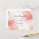 A convenient way to ask your guests to save the date is via postcard. This elegant design has romantic watercolors in shades of rose pink and blush and trendy circular gold lines. The text is easily personalised.