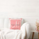 Personalized Pink, Black and White monogrammed pillow with bride and groom names and wedding date in decorative script.Solid tan colored background. Makes a great gift for newly weds. Elegant,trendy, accessory for your bedroom, favorite chair,or any room in your families home. Customize with your names, monogram initial and wedding date. Available in 100's of colors monogram, letters, initials, elegant, monogrammed, wedding, names, "bride and groom", wedding, chic, "wedding keepsake", home decor, trendy, white, gray, pillows